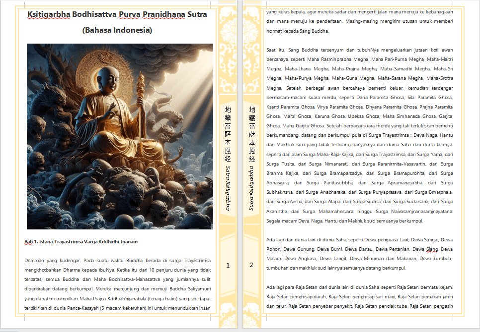Sutra Ksitigarbha yang dapat di-Download (tekan tombol “Download” di dekat judul), menggunakan Bahasa Indonesia sehingga dapat lebih mudah dipahami.
