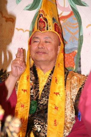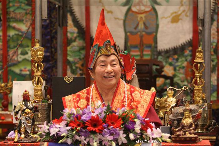 Mahaguru Jinzhou menggunakan tangan kanan menyentuh ubun-ubun Y.A. Atisa dan melantunkan ‘Syair Paripurna’.
